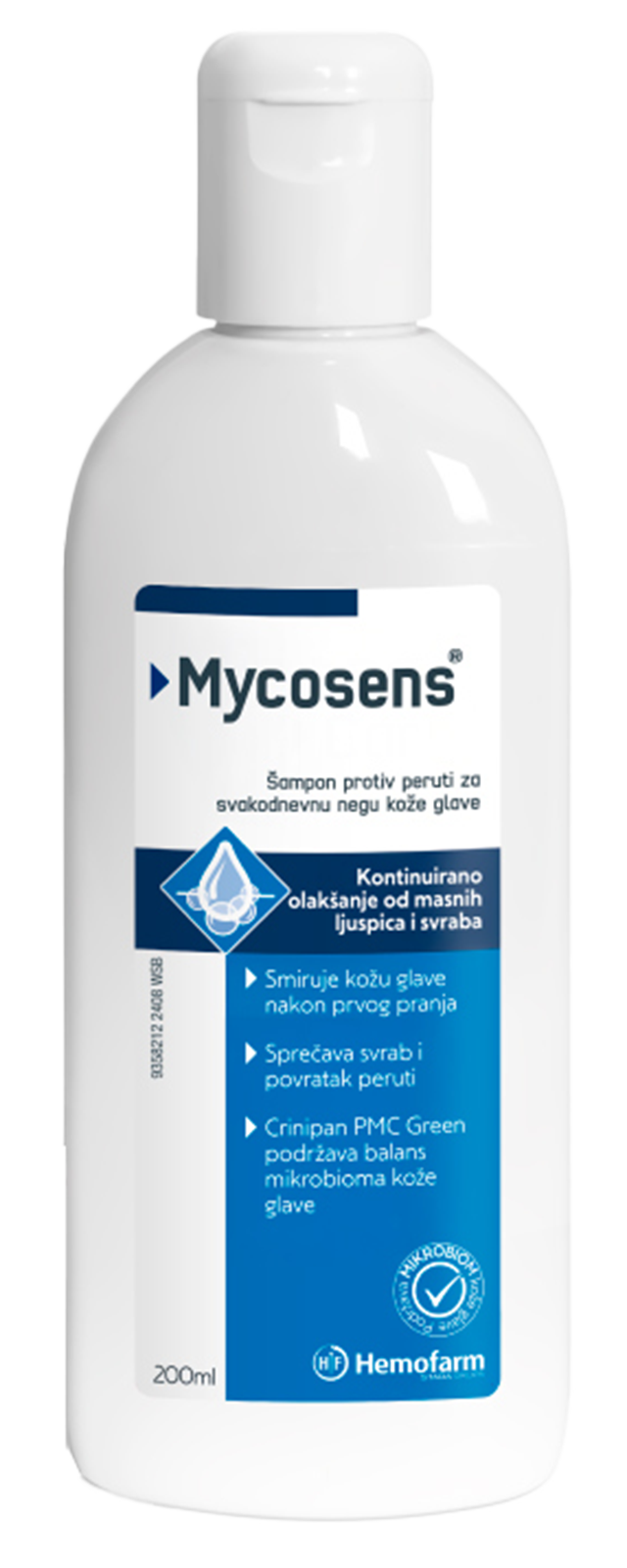 Mycosens® pruža brzo olakšanje od peruti i svraba - rezultati se vide već nakon prvog pranja. Zahvaljujući Crinipan PMC Green tehnologiji, podržava mikrobiom kože glave i čini kosu mekom i svilenkastom - što ga čini savršenim za svakodnevnu upotrebu.